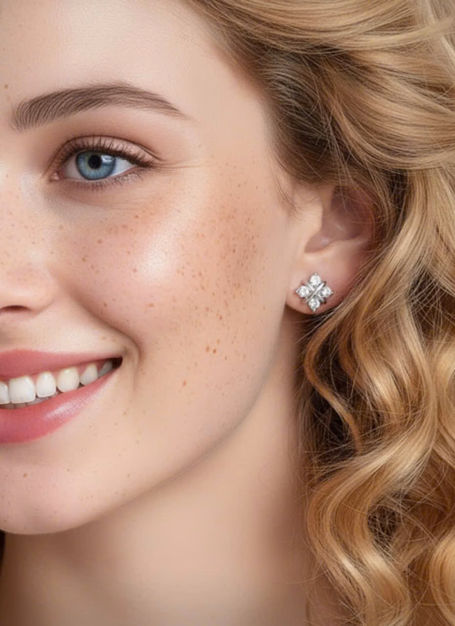 Balance Sand — Harmony in Every SparkleThe Balance Sand Earrings embody the beauty of symmetry and the quiet confidence of a woman who knows her worth. Each earring features four radiant Moissanite stones, arranged to create a gentle yet captivating balance of light. With every movement, the stones catch the glow around you, reflecting brilliance…