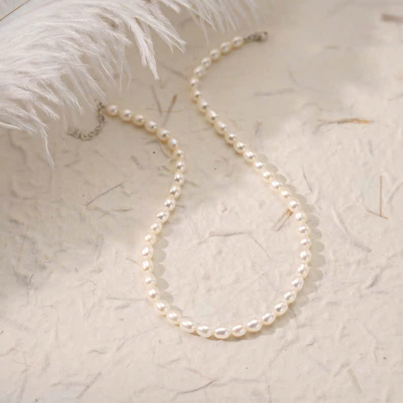 Each pearl is a soft whisper from the sea—pure, natural, and perfectly imperfect. Designed to rest gently on your skin, this necklace brings a calm, timeless glow to any look. With a solid sterling silver clasp, it promises not just beauty, but durability that stands the test of time.