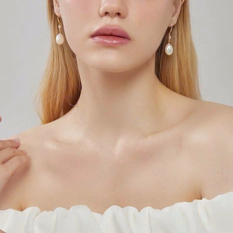 With a shimmering CZ accent above a gracefully suspended baroque pearl, each earring tells a story of elegant imperfection and natural beauty.