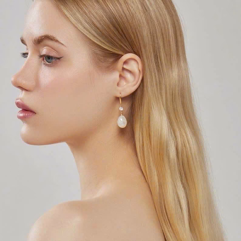 Featuring a delicately dangling pearl paired with a shimmering CZ stone on top, comes with 🌟 Gold-plated brass hook & 🌟 Gold-plated 925 sterling silver hook
